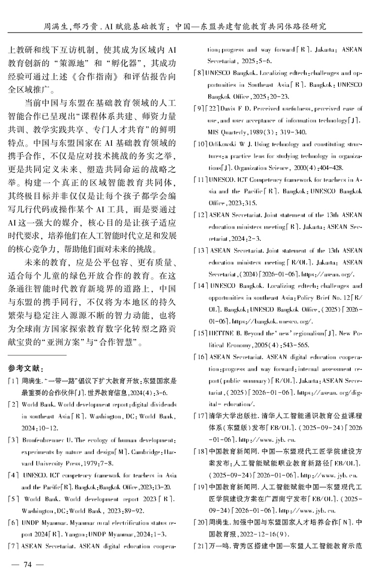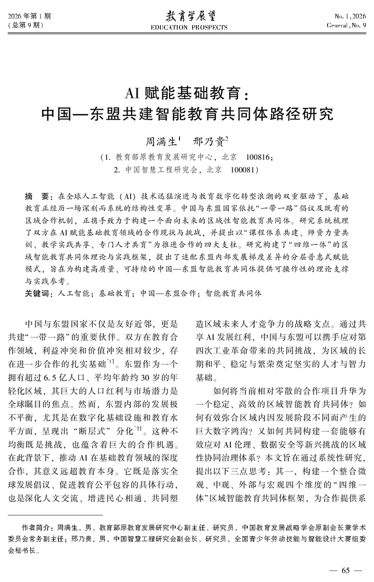 周滿生 邢乃貴|AI賦能基礎教育:中國—東盟共建智能教育共同體路徑研究
