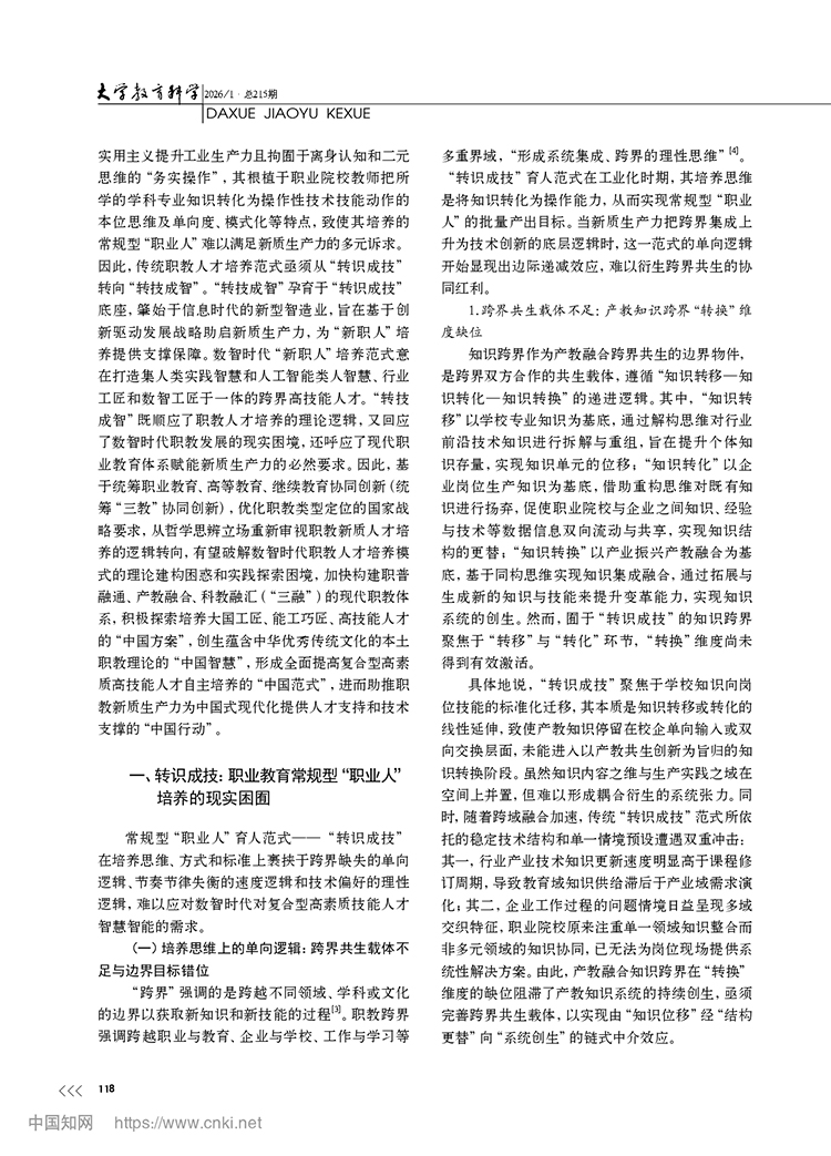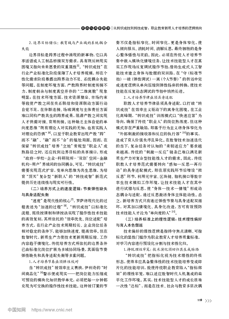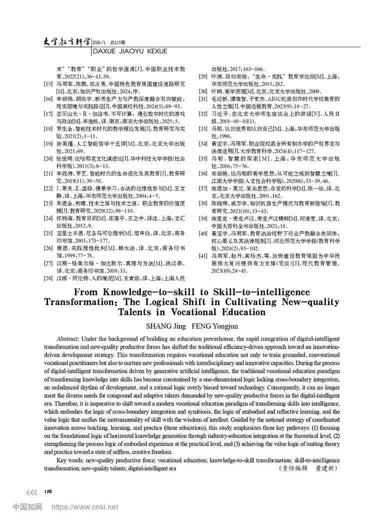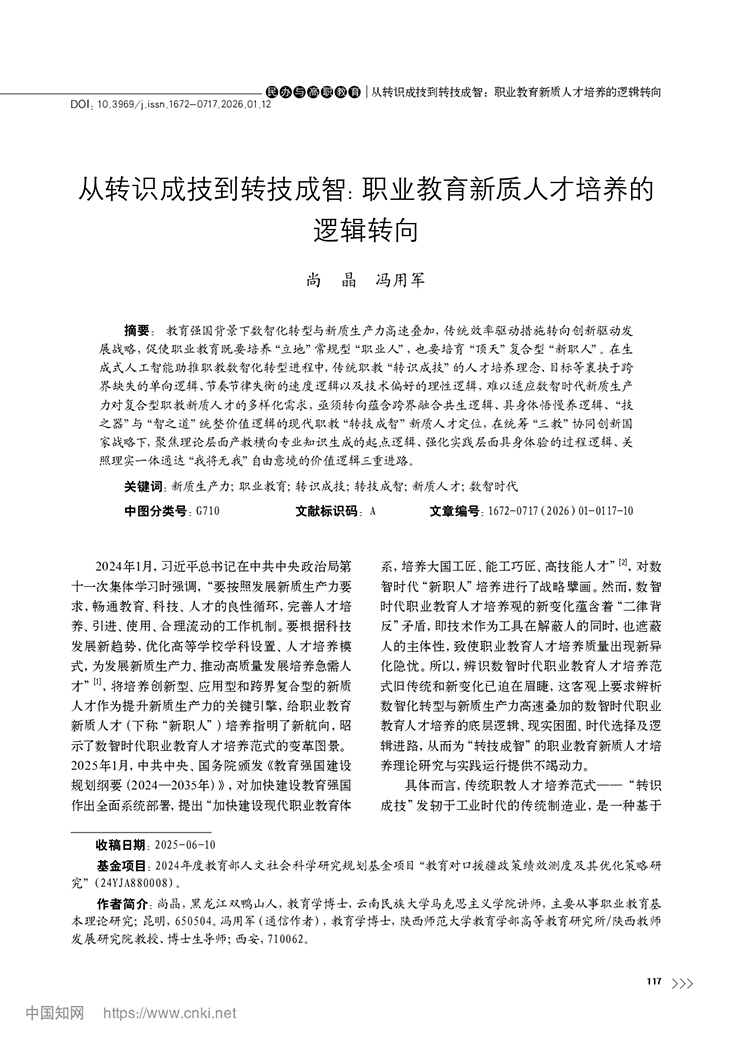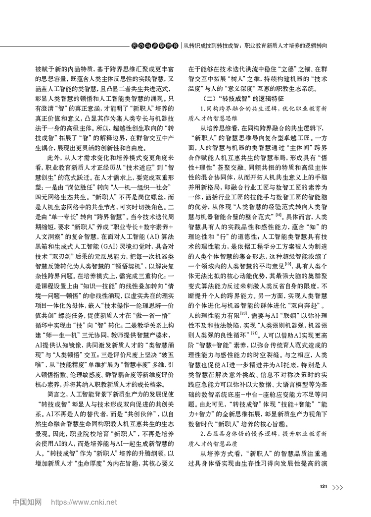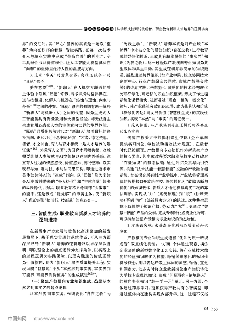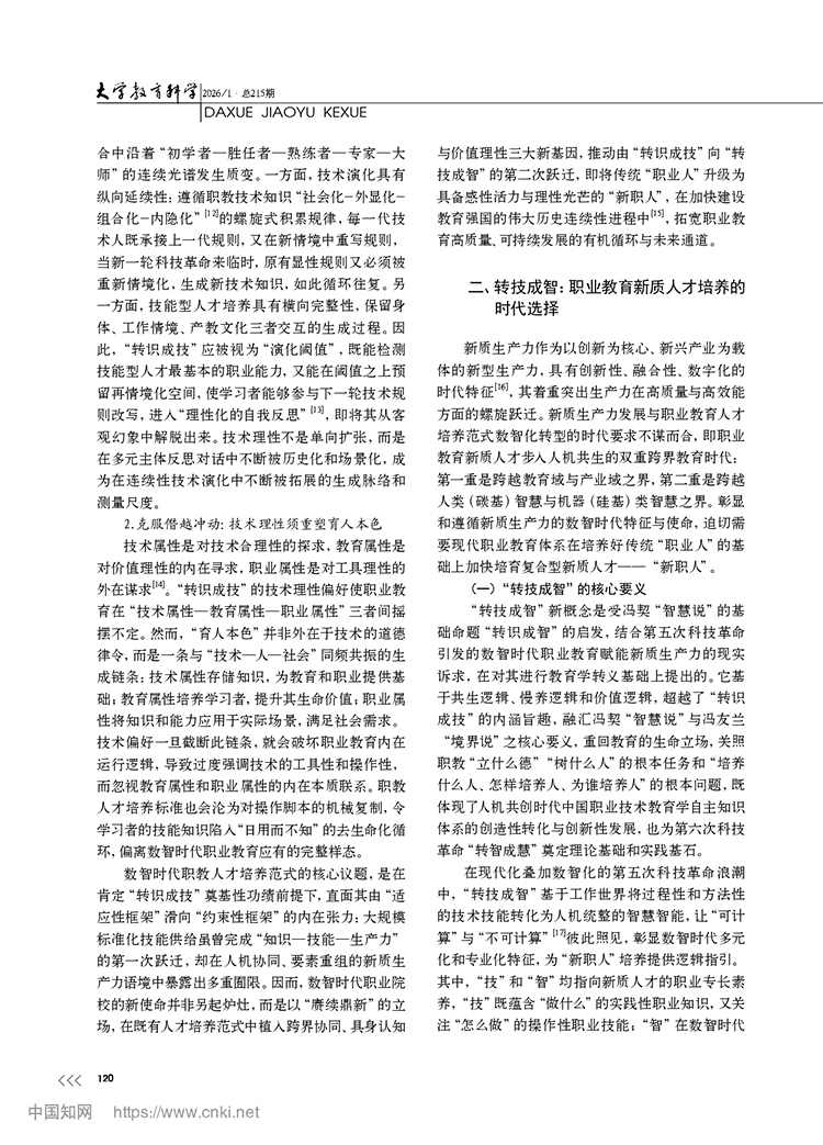 尚晶 馮用軍|從轉識成技到轉技成智:職業教育新質人才培養的邏輯轉向