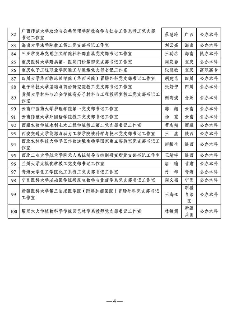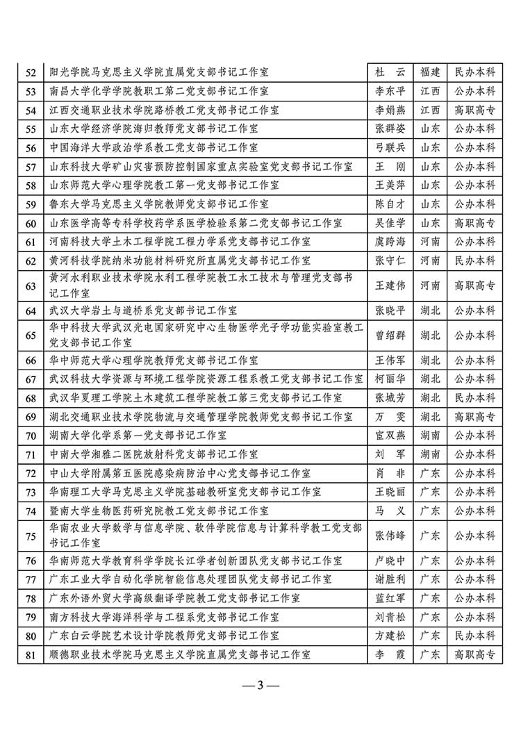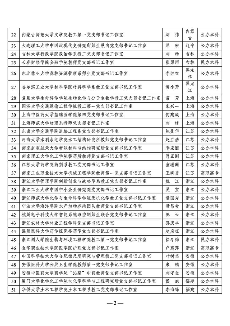 教育部公示第二批高校“雙帶頭人”教師黨支部書記工作室建設名單