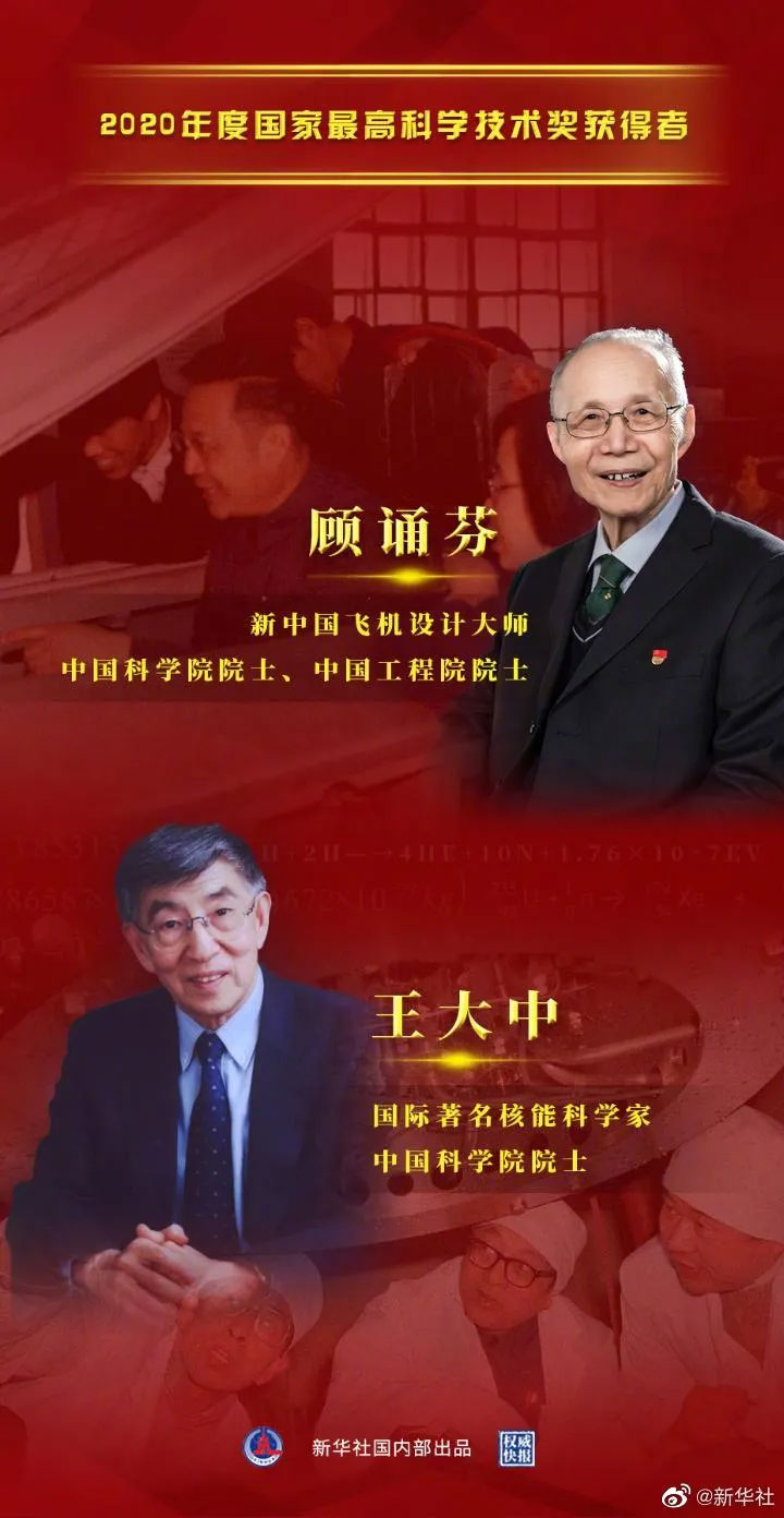 2020年度國家科學技術獎勵大會11月3日上午在人民大會堂舉行,2020年度國家科學技術獎共評選出264個項目、10名科技專家和1個國際組織。其中,中國航空工業集團有限公司顧誦芬院士和清華大學王大中院士分獲國家最高科學技術獎。
