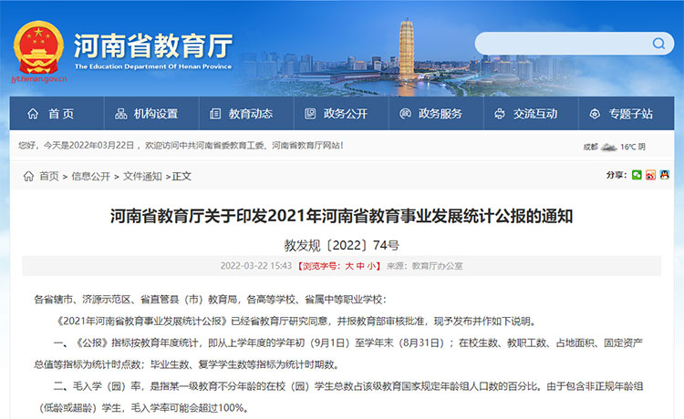 2021年河南省教育事業發展統計公報