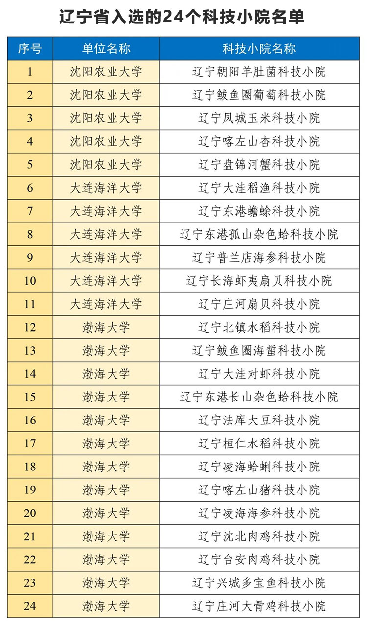 近日,教育部辦公廳、農業農村部辦公廳、中國科協辦公廳聯合發布了《關于支持建設一批科技小院的通知》,確定對全國68個單位的780個科技小院予以支持建設,遼寧省沈陽農業大學、大連海洋大學、渤海大學3所高校24個科技小院入選,入選單位數全國并列第六。
