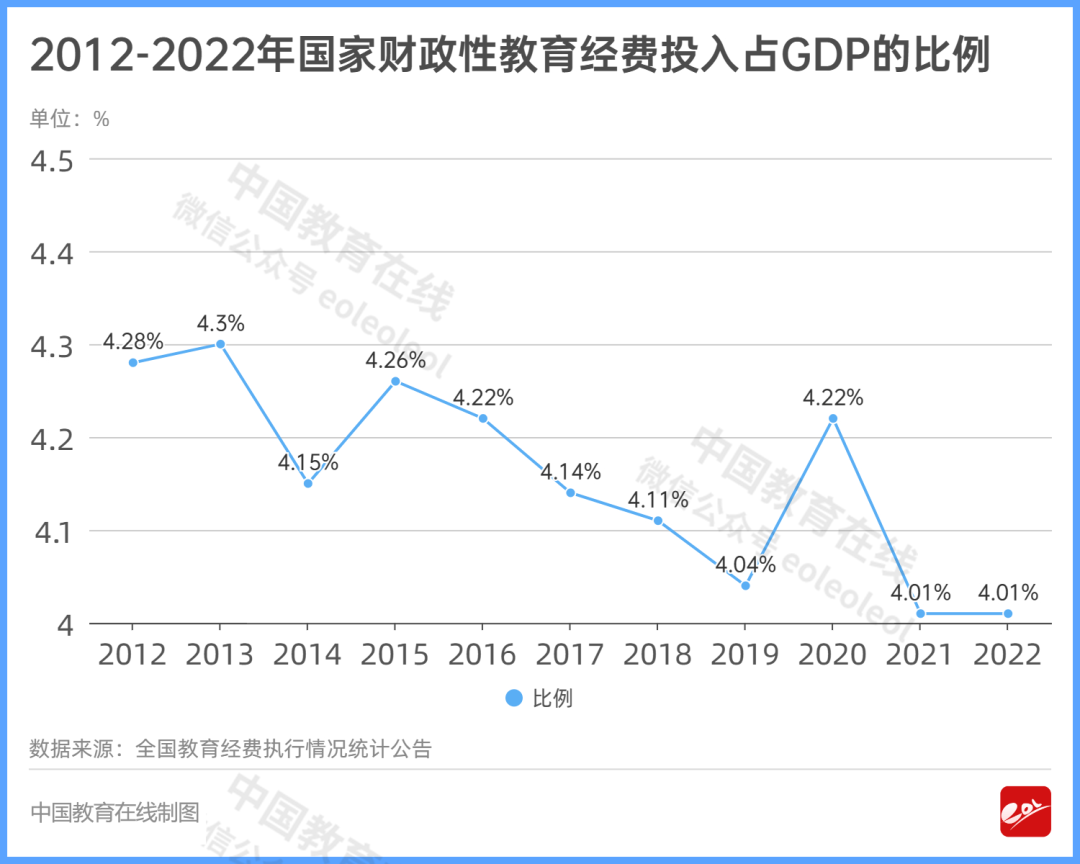 【國家財政性教育經費占GDP比例連續11年保持在4%以上】