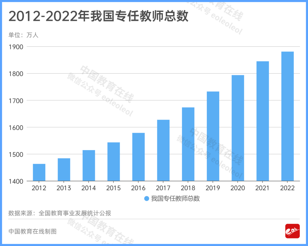 據《2022年全國教育事業發展統計公報》顯示,2022年,全國共有各級各類專任教師1880.36萬人。這支規模宏大的高素質專業化教師隊伍,成為了支撐世界上最大規模教育體系的“大國良師”。第39個教師節,習近平總書記致信全國優秀教師代表,強調要“大力弘揚教育家精神”,“為強國建設、民族復興偉業作出新的更大貢獻”,并首次提出、深刻闡釋了中國特有的教育家精神的時代內涵。
