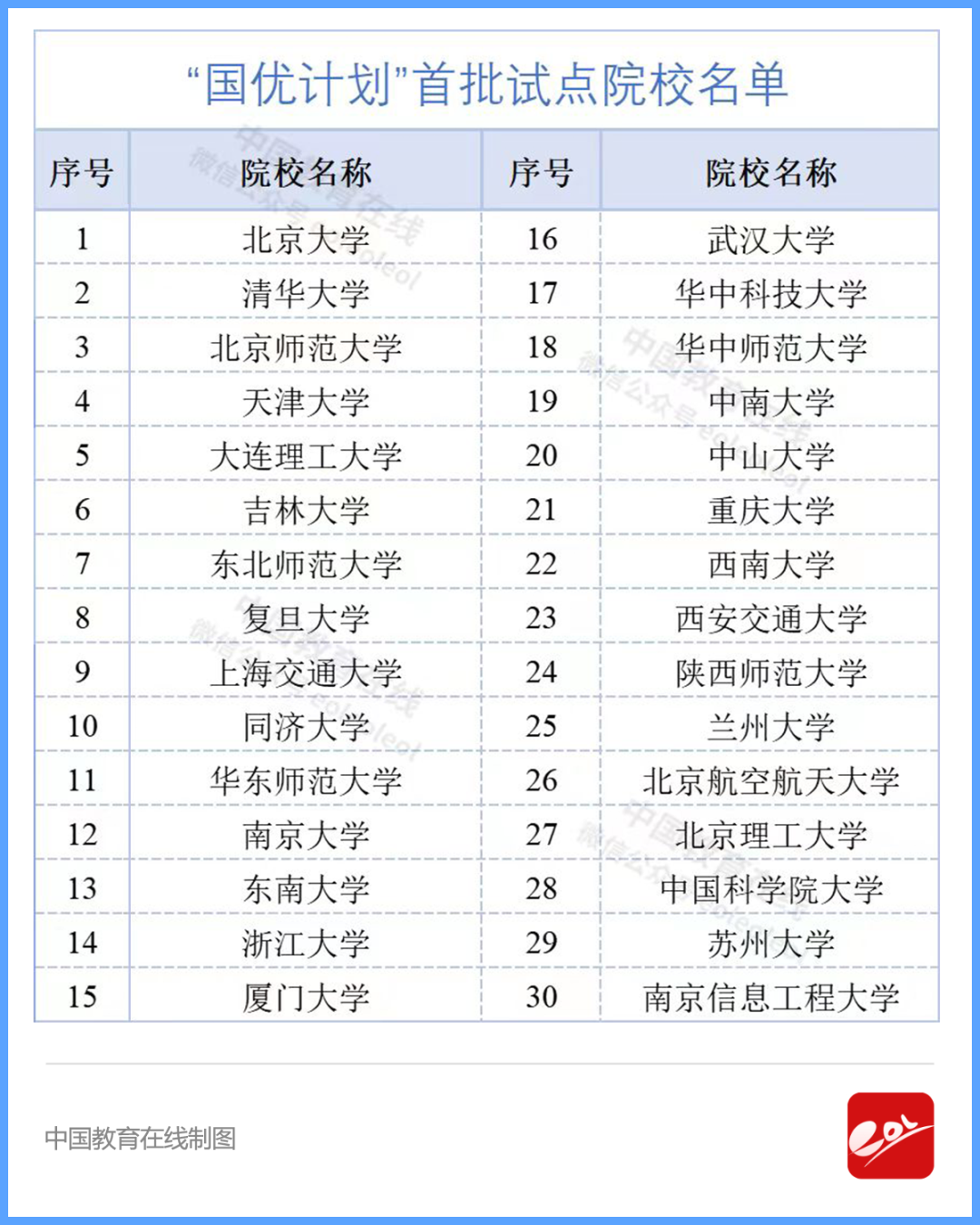【遴選30所“雙一流”大學為中小學培養優秀教師】