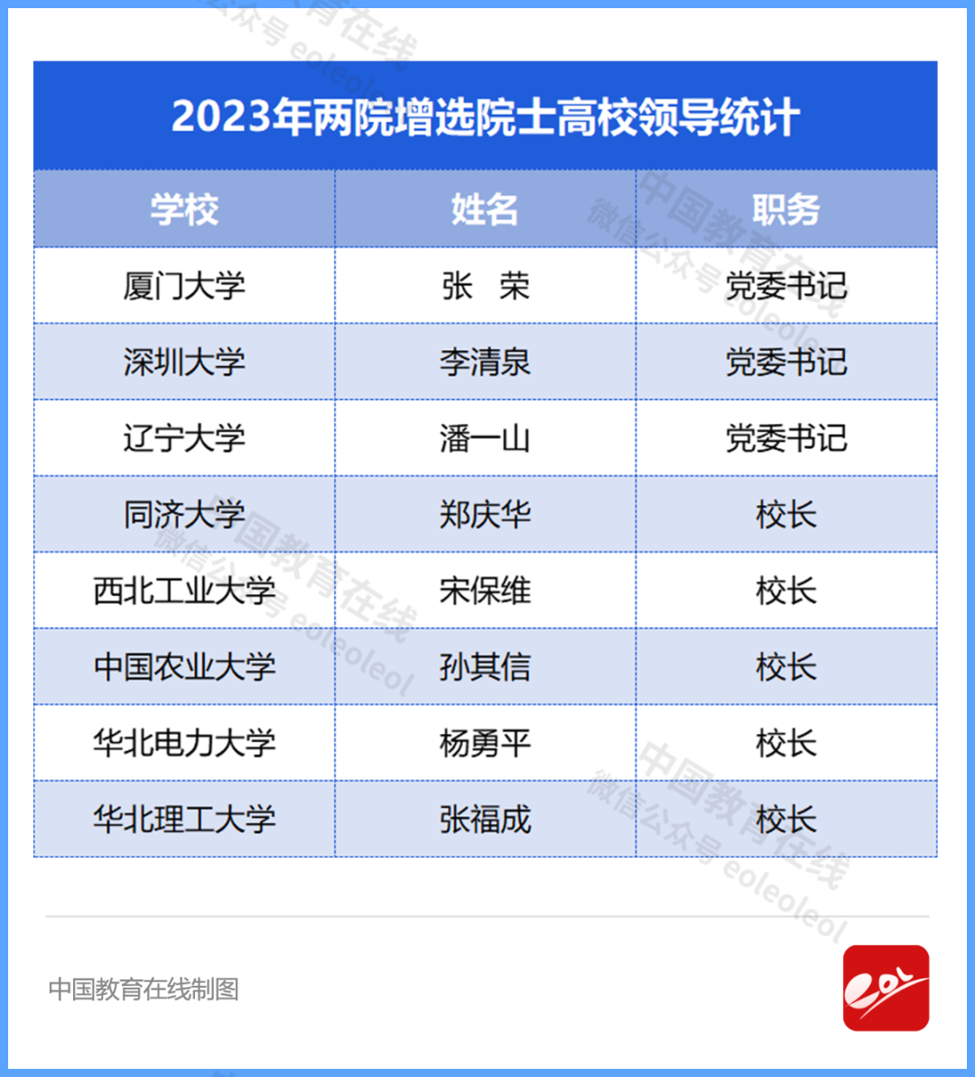 【2023年兩院院士增選133人,其中有8位高校領導】
