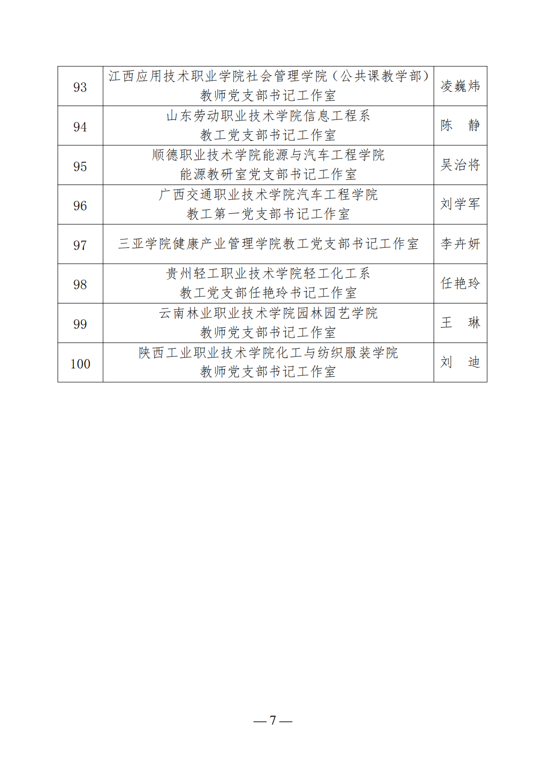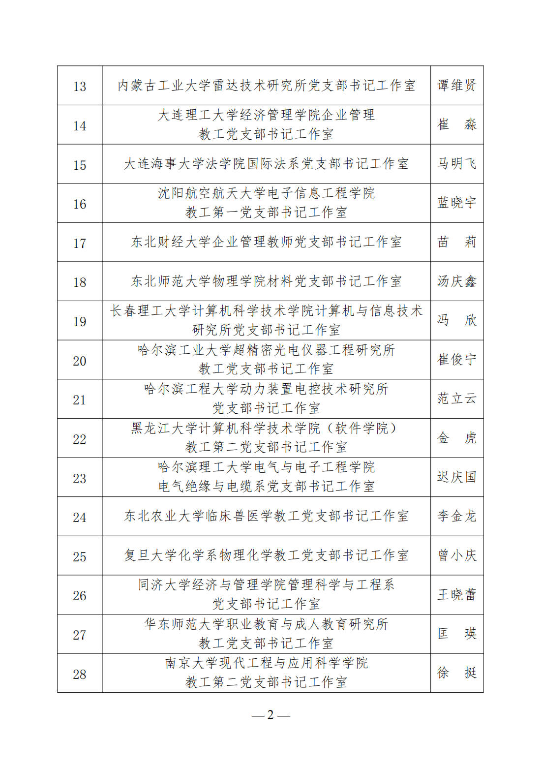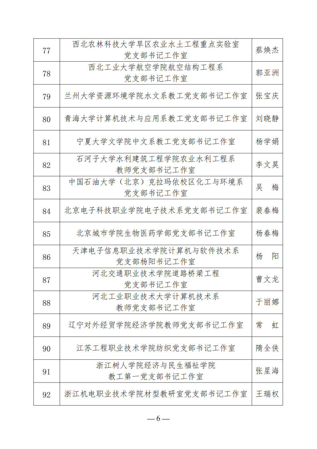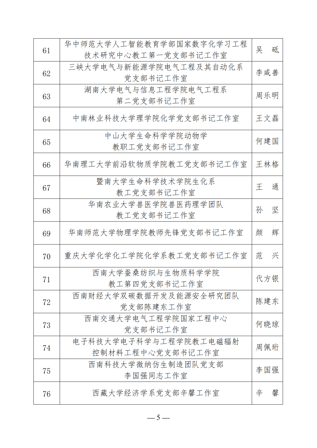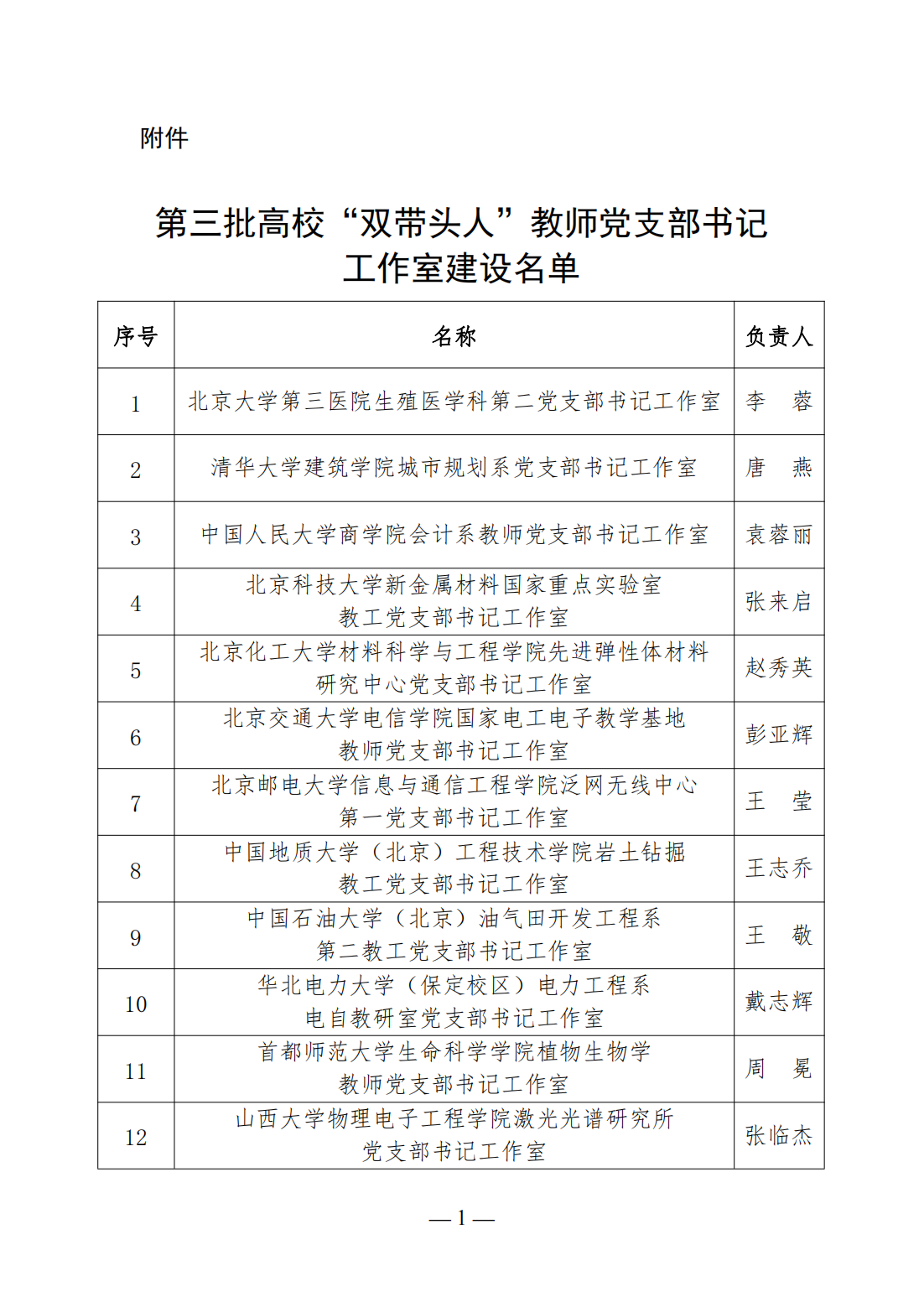 第三批高校“雙帶頭人”教師黨支部書記工作室建設名單