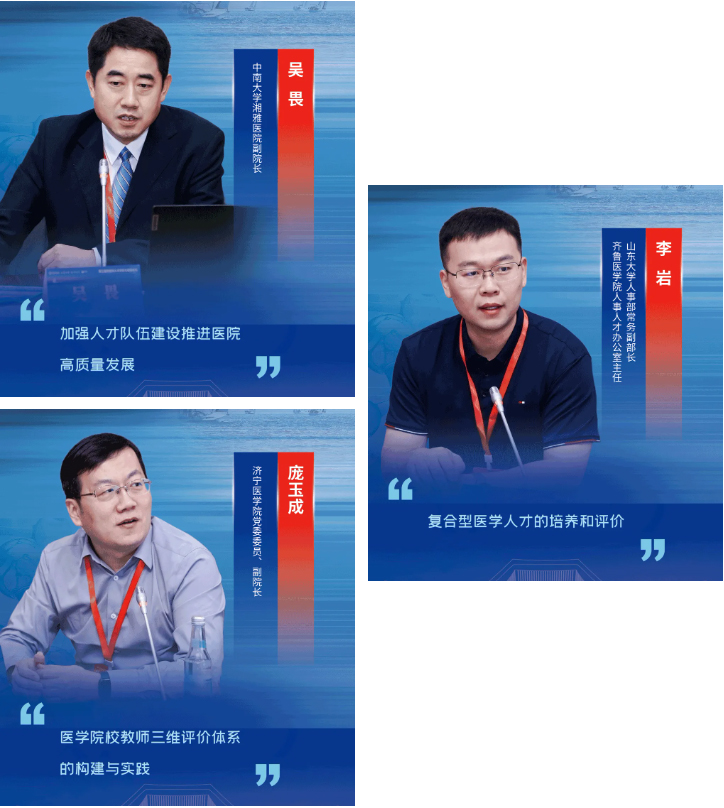 下午的分論壇一和分論壇二分別聚焦于新醫科人才評價和人才引進。在分論壇一中,中南大學湘雅醫院副院長吳畏在“加強人才隊伍建設推進醫院高質量發展”的報告中,強調了人才隊伍建設在醫院發展中的核心作用。濟寧醫學院黨委委員、副院長龐玉成則介紹了“醫學院校教師三維評價體系的構建與實踐”,為醫學教育評價提供了新視角。山東大學人事部常務副部長、齊魯醫學院人事人才辦公室主任李巖則探討了復合型醫學人才的培養和評價。