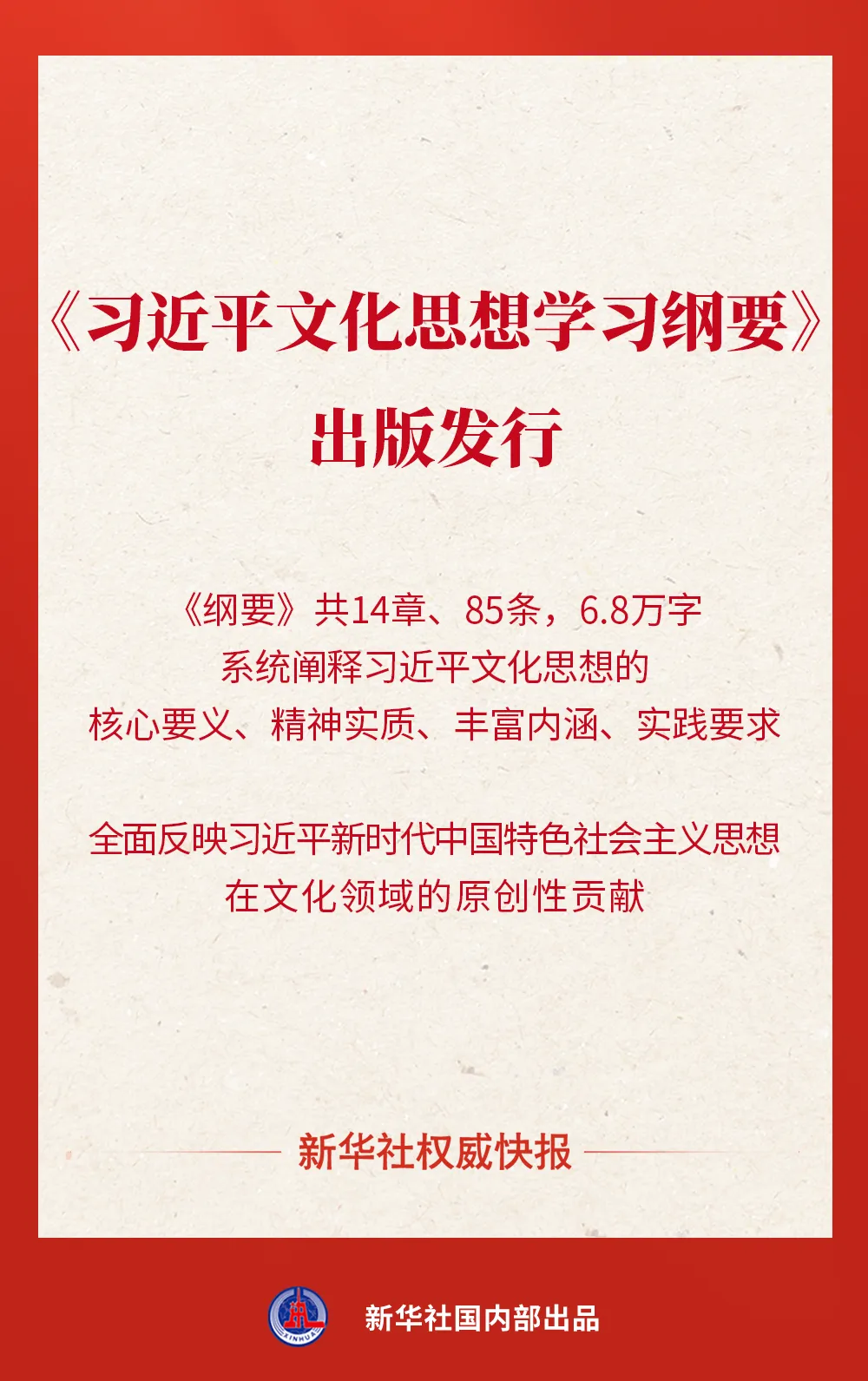 為深入學習習近平新時代中國特色社會主義思想,貫徹落實習近平文化思想,中央宣傳部組織編寫《習近平文化思想學習綱要》(以下簡稱《綱要》)一書,已由學習出版社、人民出版社聯合出版,即日起在全國發行。