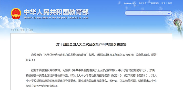 近日,教育部網站發布了《對十四屆全國人大二次會議第0516號建議的答復》,回復了委員“關于以勞動教育助力銀發經濟的建議”,其中提到教育部大力加強銀發經濟相關專業建設,將勞動教育與相關專業課程相結合。