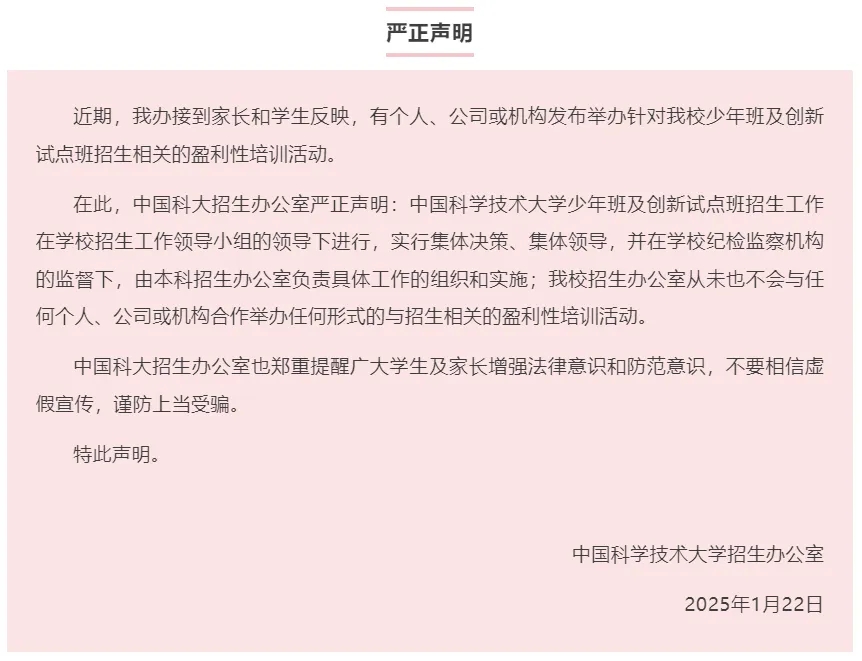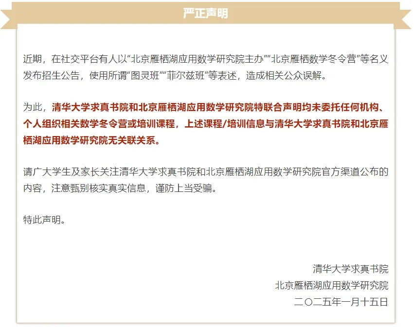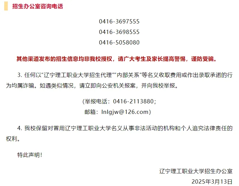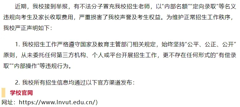多所高校通過官方渠道發表聲明,鄭重提醒廣大考生及家長務必保持高度警惕,增強防范意識,切勿輕信這些虛假宣傳,謹防陷入詐騙陷阱,切實維護自身的合法權益。相關聲明一起看——