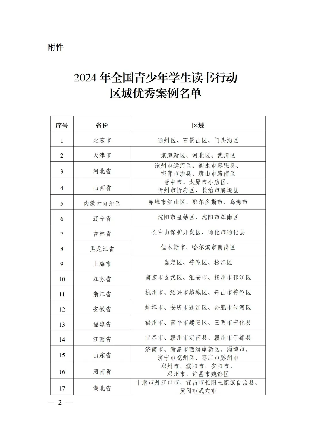 近日,教育部公布2024年全國青少年學生讀書行動區域優秀案例名單,經各省級教育行政部門推薦,最終確定98個區域優秀案例。