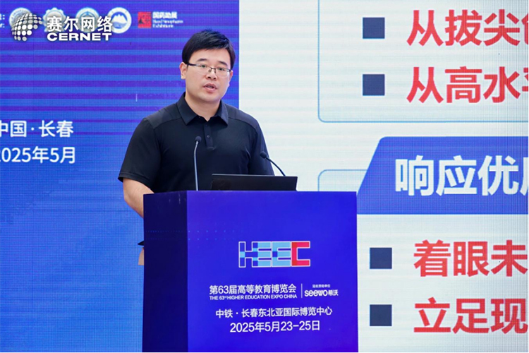 賽爾網絡有限公司副總經理蔡哲分享了《助力高校 AI 新生態 探索構建智慧教育與科研算力基座》的主題報告。他表示,在高校加快建設智算平臺的今天,賽爾網絡堅持聚焦教育科研,協同技術創新,積極推動產研融合創新、支撐智慧教育和科研算力底座建設,并全方位賦能高校教學科研、創新孵化以及應用產業化等多個關鍵領域,服務教育強國建設。