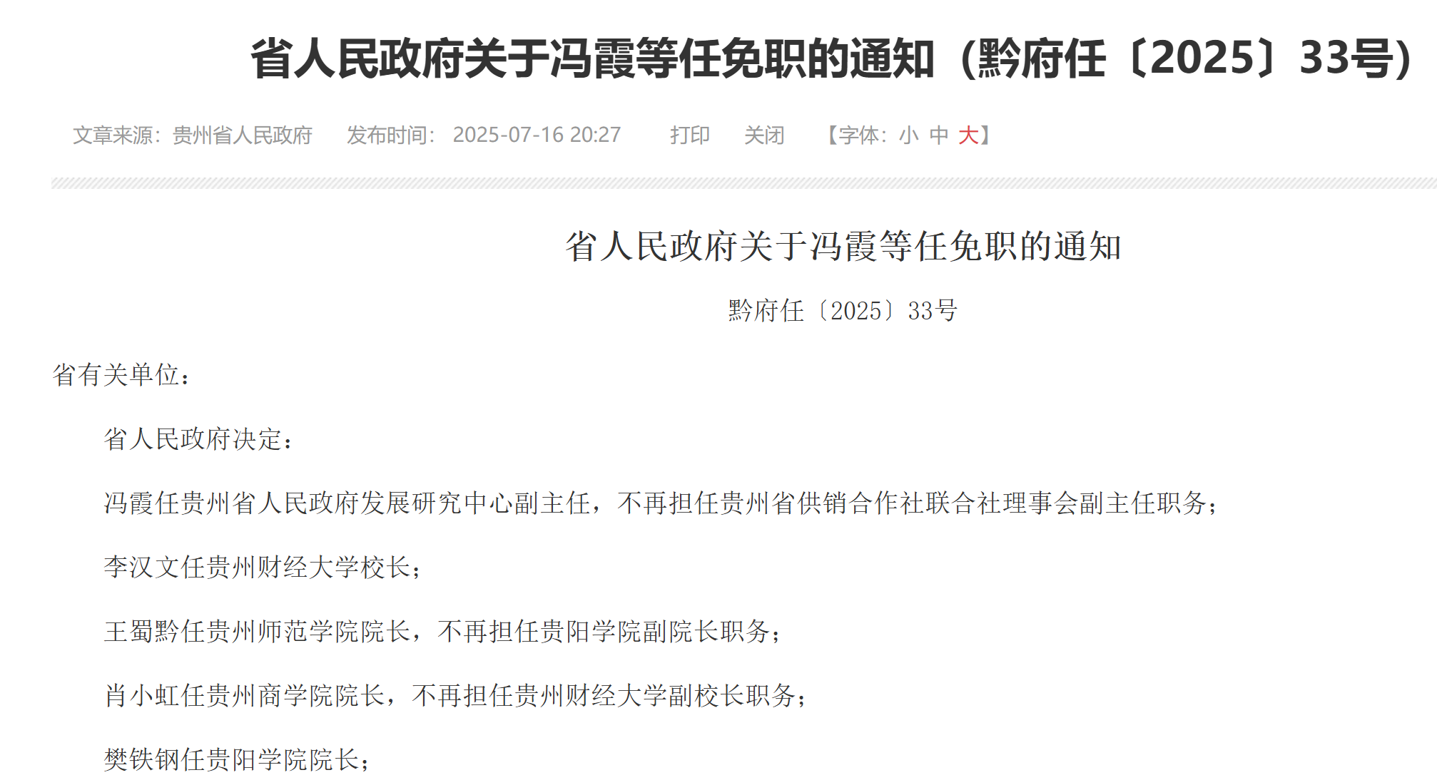近日,貴州省政府發布一批人事任免通知,涉及多所高校。