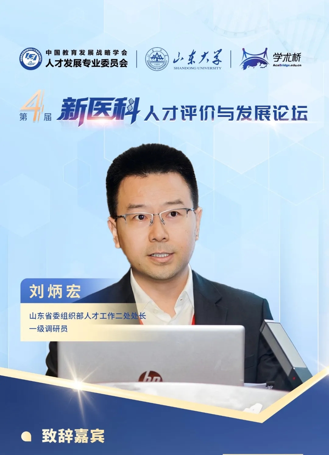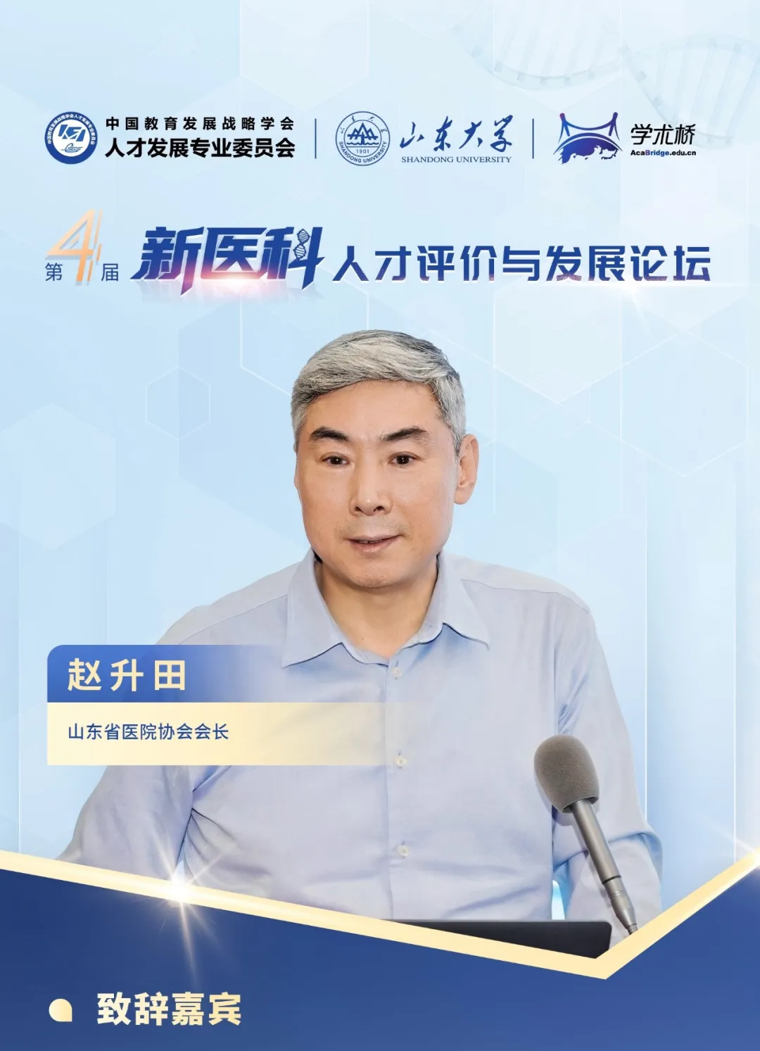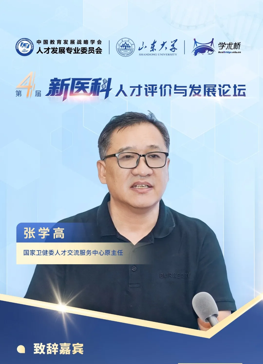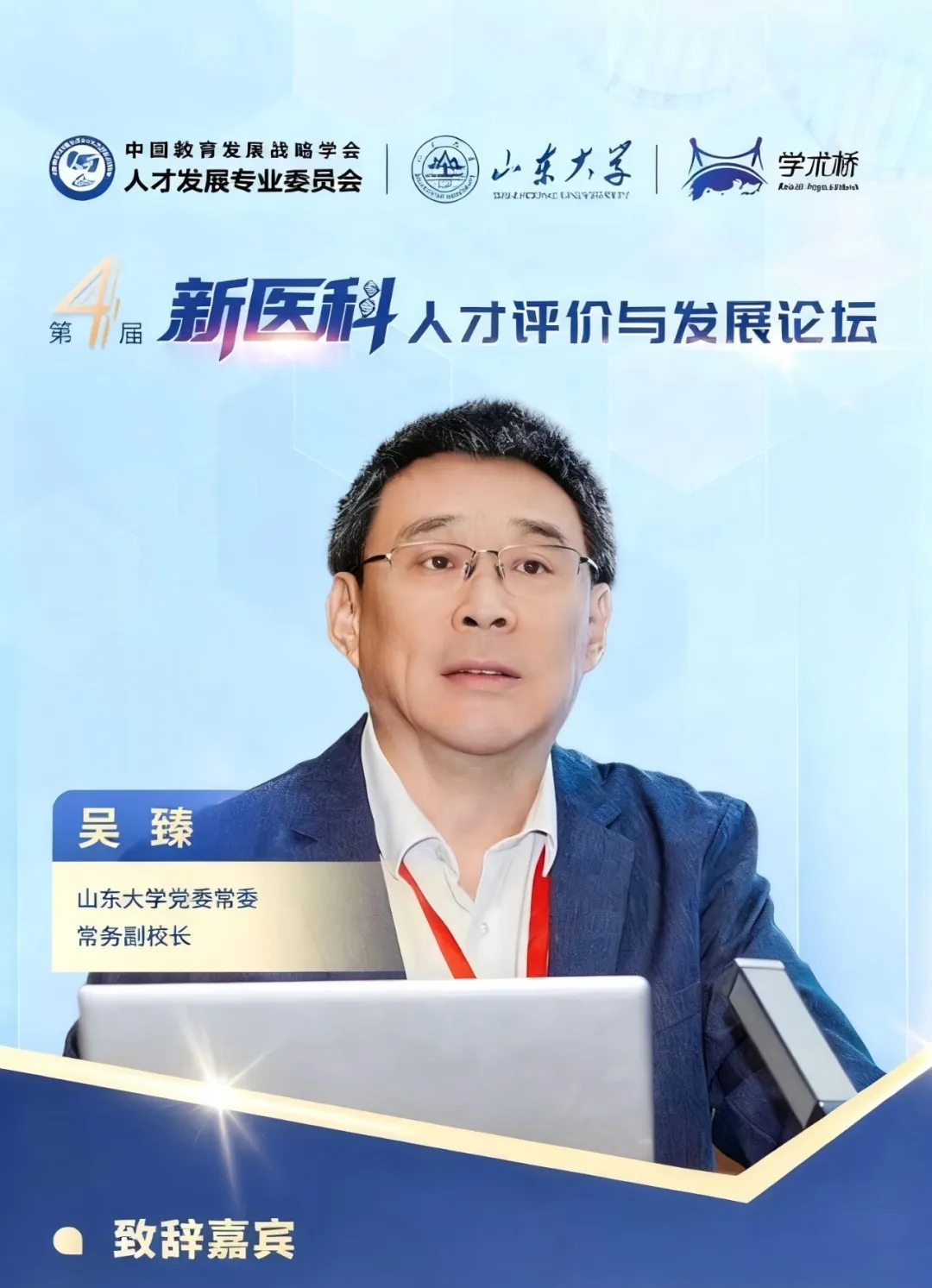 論壇開始,山東大學黨委常委、常務副校長吳臻,中國教育發展戰略學會常務副會長兼人才發展專委會理事長李志民,山東省委教育工委委員、省教育廳黨組成員、副廳長王浩,山東省衛生健康委員會黨組成員、副主任張延安,山東省委組織部人才工作二處處長、一級調研員劉炳宏分別發表致辭。