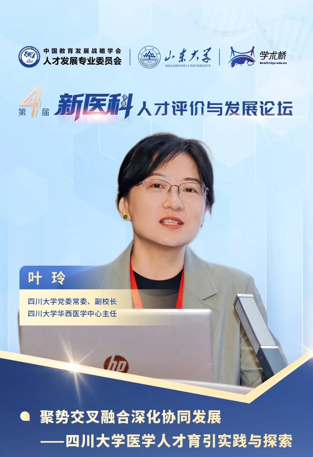 四川大學黨委常委、副校長,四川大學華西醫學中心主任葉玲分享了四川大學醫學人才育引實踐與探索。她提到,四川大學依托綜合性大學優勢,實施“醫學+”驅動學科發展總戰略,深入推進醫工融合發展,形成“全鏈覆蓋”的“醫學+”重大創新平臺集群優勢。同時,學校牢固樹立“人才是第一資源”理念,深入實施人才強校戰略,實施特色人才育引方案、打造人才分類發展體系,著力構筑醫學人才發展新高地。