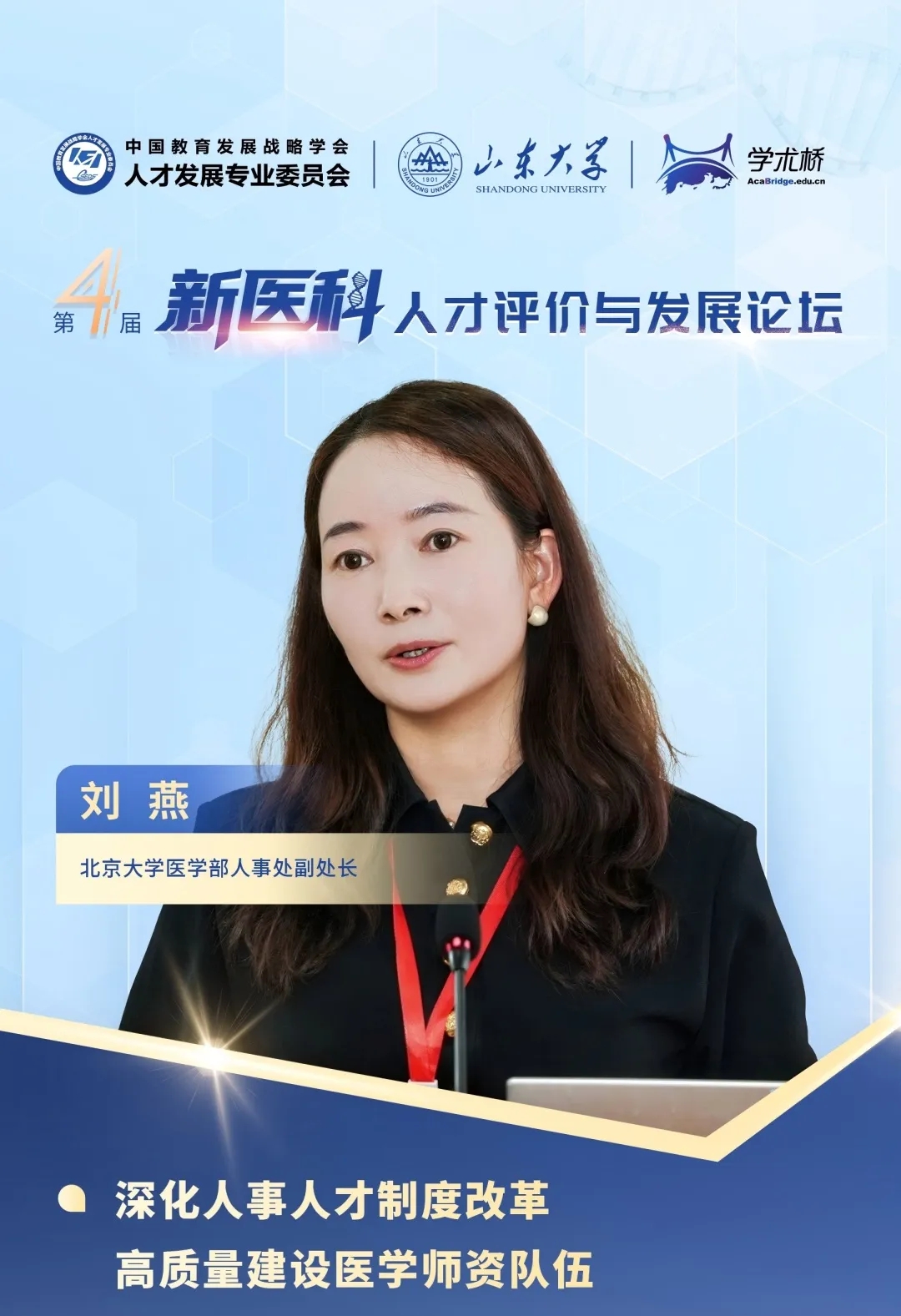 北京大學醫學部人事處副處長劉燕介紹,北京大學醫學部深入貫徹中央人才工作會議精神,系統性推進人事人才制度改革。通過建立以預聘-長聘制度為核心的教師聘用體系,實施教研、教學、研究技術分系列管理,構建了多層次人才發展通道。改革突出分類評價導向,破除“四唯”傾向,強化臨床實踐與前沿創新并重,依托“醫學+X”交叉平臺推動學科融合創新。形成“引育服”全鏈條保障體系,為構建高素質醫學師資隊伍、服務健康中國戰略提供制度性支撐。