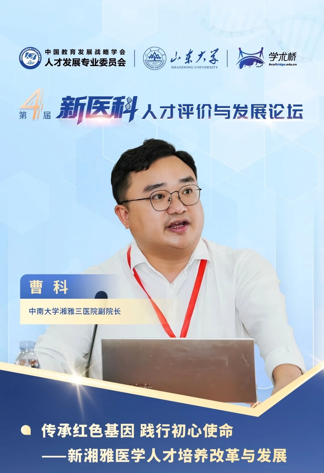 為深入學習貫徹中央人才工作會議、黨的二十屆三中全會精神,加快人才分類評價機制改革精神落地,為實現新醫科人才高質量發展提供智力支撐,9月28日,人才發展專委會第四屆新醫科人才評價與發展論壇在山東大學舉行。本屆論壇匯聚了200余位來自全國醫學教育、醫療衛生領域的知名專家、高校領導及一線管理者,共商醫學人才分類評價大計,共繪新醫科人才發展新藍圖。