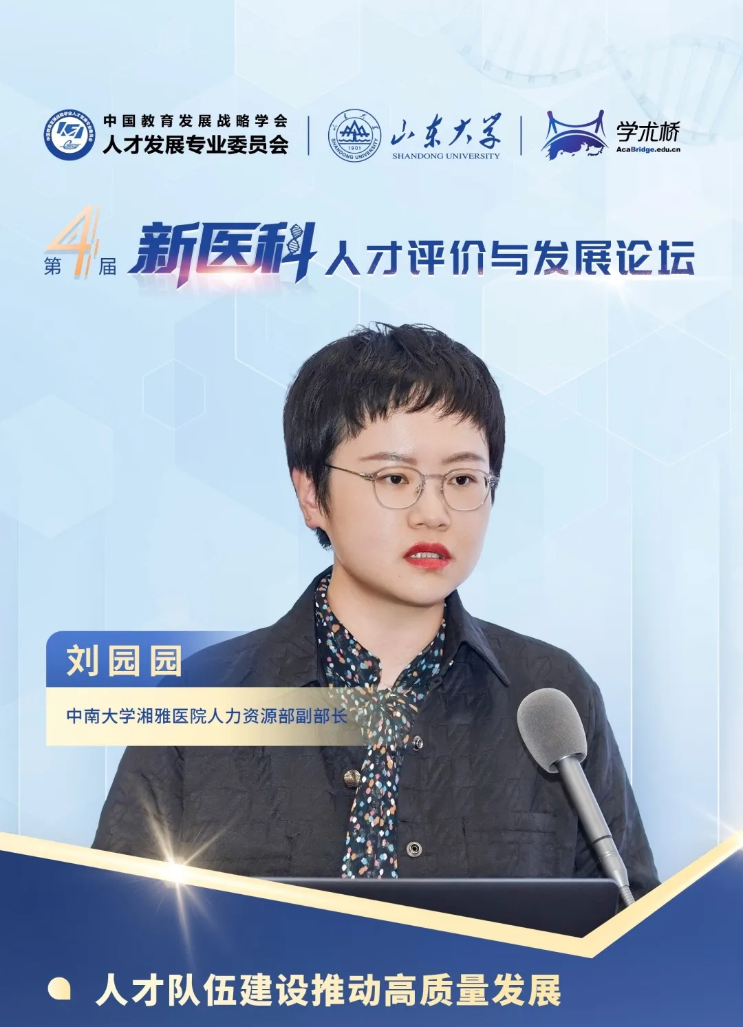 中南大學湘雅醫院人力資源部副部長劉園園指出,中南大學湘雅醫院秉持"加速度、跨越式、內涵型、高質量"的發展基調。在組織領導方面,嚴格落實黨委領導下的院長負責制。在體系布局方面,構建了覆蓋"選、育、用、留、評"全鏈條的制度體系,實施多元化人才培養計劃,創新人才引進機制,營造良好人才發展生態。通過這些系統性舉措,湘雅醫院打造了一支結構合理、素質優良的人才隊伍,為醫院高質量發展提供了強有力支撐。
