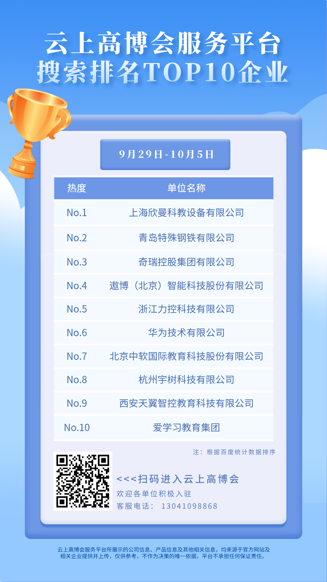 云上高博會熱搜榜(9.29-10.5)TOP10企業、高校榜單來啦
