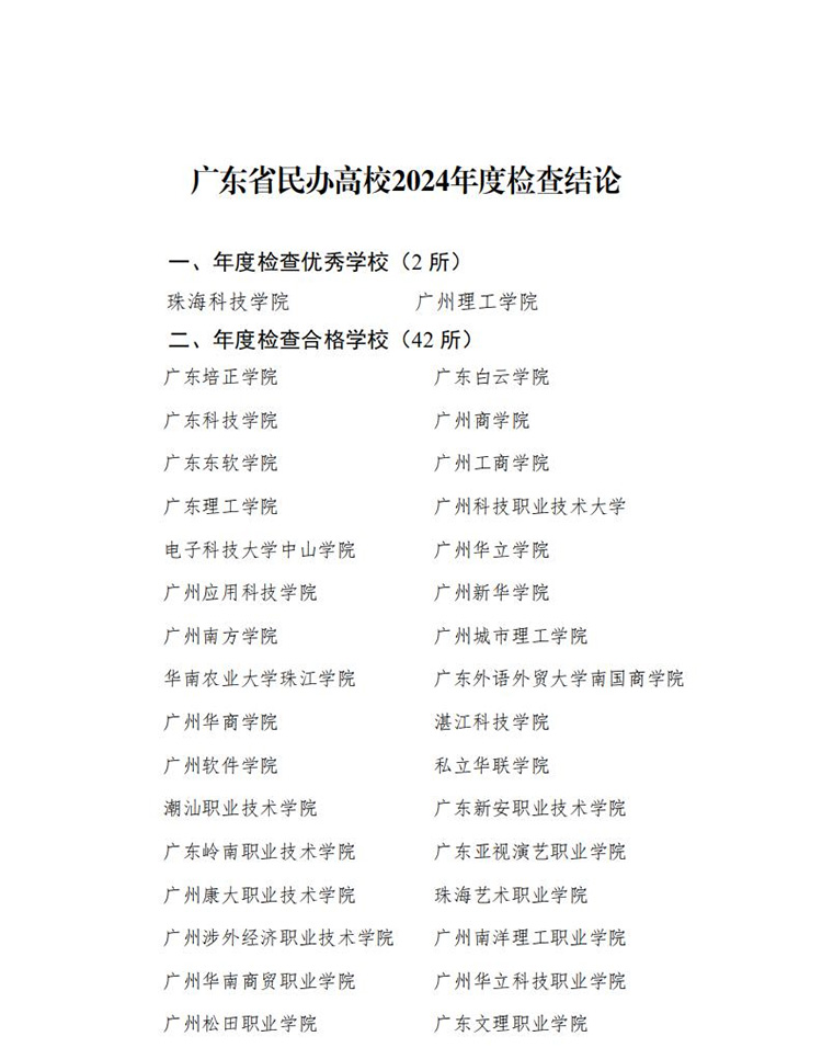 2所優秀,6所基本合格!廣東公示民辦高校2024年檢查結果