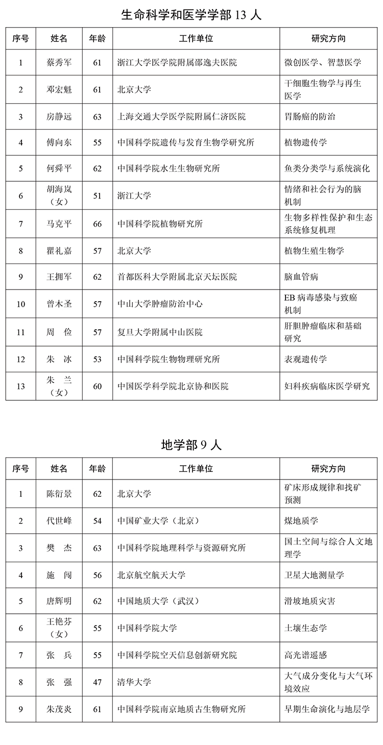 新當選的中國科學院院士平均年齡57.2歲,最小年齡44歲,最大年齡66歲,60歲(含)以下的占67.1%,女性科學家有5人當選。新當選的中國工程院院士中,有6位扎根西部邊遠地區的專家,有8位女性科學家。