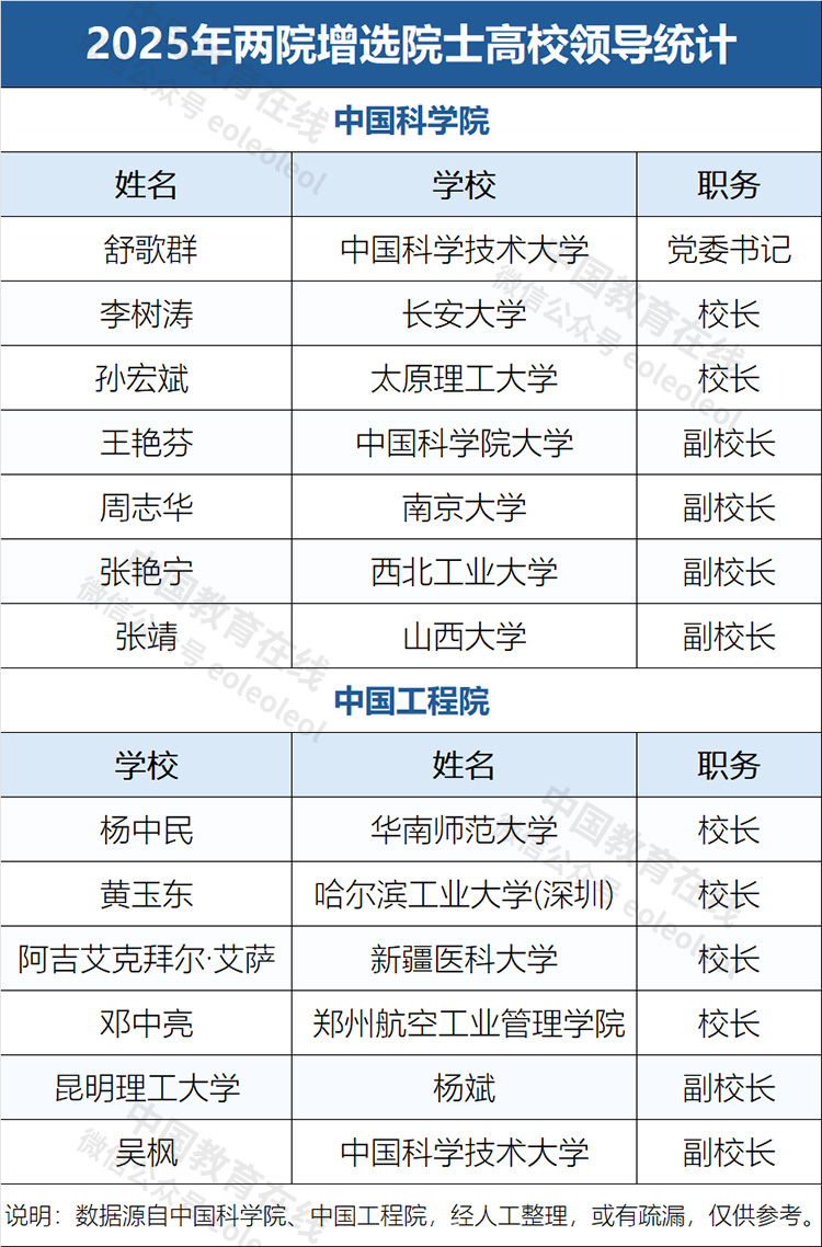 中國教育在線綜合自中國科學院、中國工程院、各學校官方微信號,或有疏漏,歡迎指正。