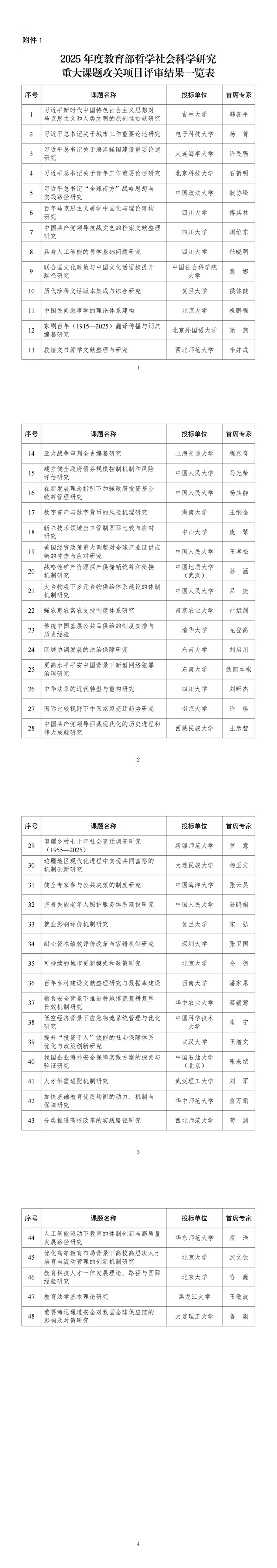 4月2日,教育部社會科學司公示2025年度教育部哲學社會科學研究重大課題攻關項目、高校思想政治理論課教師研究專項重大課題攻關項目評審結果。