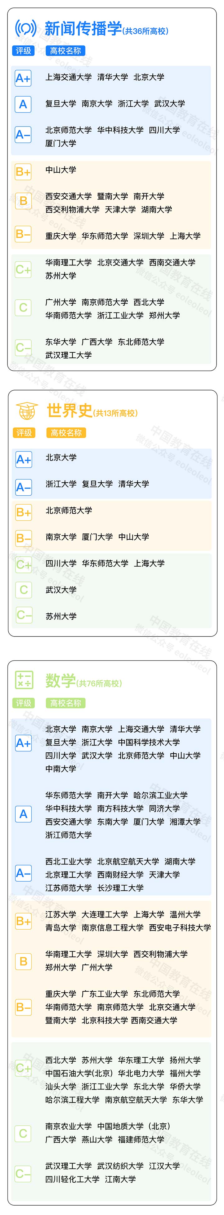 這些參與高校在每門學科中會獲得介于A+到C-之間的評級。