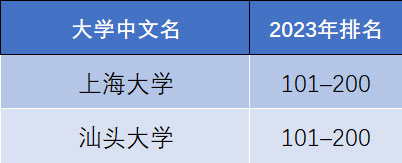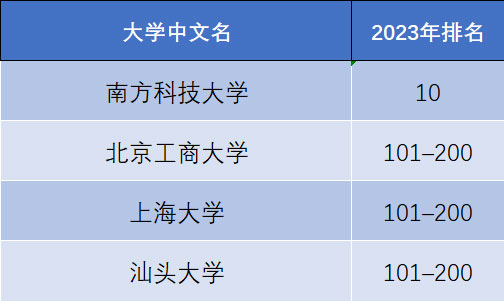 中國大陸總排名最高的高校是上海大學,位居總排名世界第97位。南方科技大學、汕頭大學和蘇州大學都位列世界前600名。