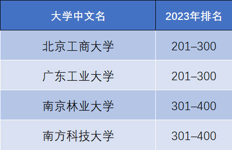 中國臺灣共有三所高校進入總排名前100名,其中以臺灣成功大學(NCKU)為首,排名世界第24,臺灣大學排名世界第67名,陽明交通大學則排名世界第83名。