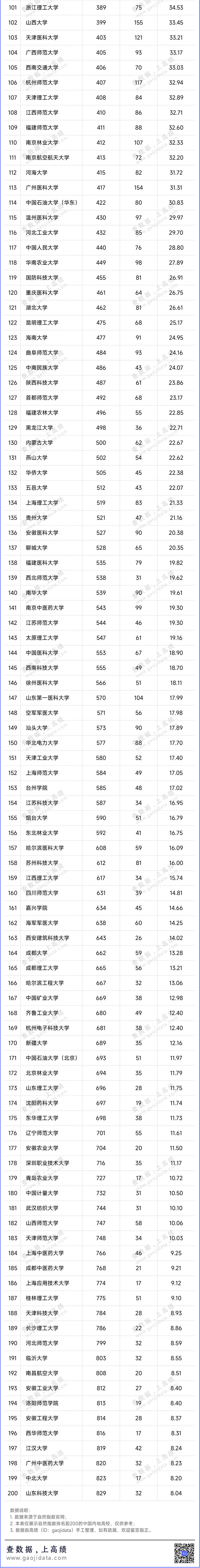 非“雙一流”高校中,深圳大學、南京工業大學、山東師范大學、青島大學、廣東工業大學、江蘇大學、揚州大學、南方醫科大學、西湖大學、青島科技大學、浙江工業大學和河南師范大學,這12所高校同樣表現優異,位居全球高校前300。