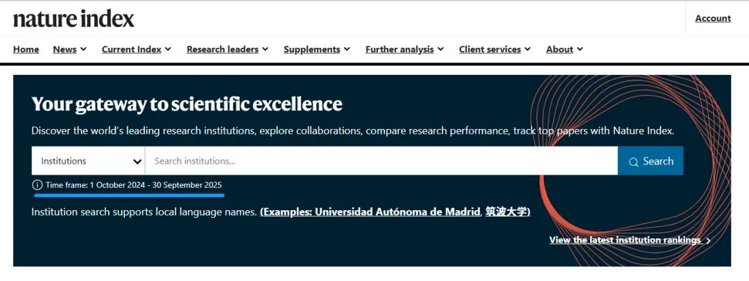 Nature Index由Springer Nature發布,追蹤各機構研究者在145本獨立評選的高質量自然科學和衛生科學期刊上的研究論文的貢獻。