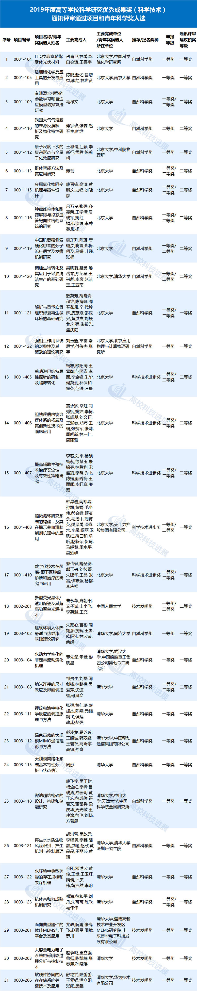 附:2019年度高等學校科學研究優秀成果獎(科學技術)通訊評審通過項目和青年科學獎人選