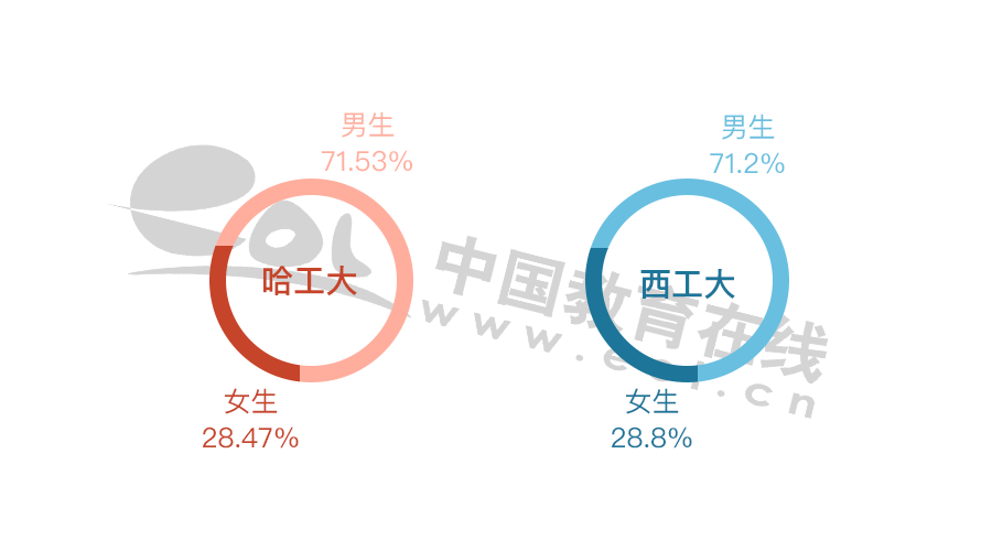 哈工大和西工大各個學歷畢業生比例基本相同。