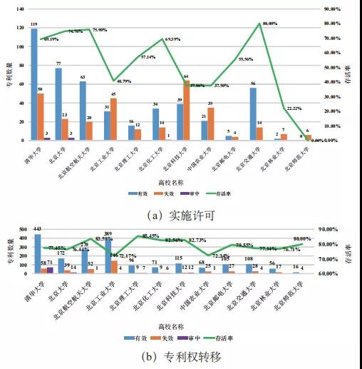 北京“雙一流”高校許可和轉讓專利的有效比例