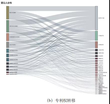 除北京外,江蘇、 廣東、河北、浙江、山東為北京“雙一流”高校許可專利的主要流向;轉讓專利主要流向為廣東、江蘇、 山東、天津、浙江。