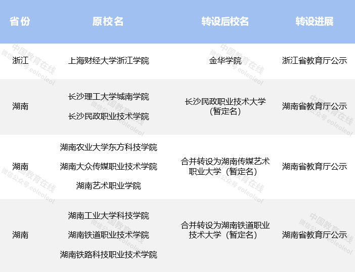 5月25日,湖南教育廳公示設立3所公辦職業本科大學,都是由獨立學院和公辦職業技術學院合并轉設而來。