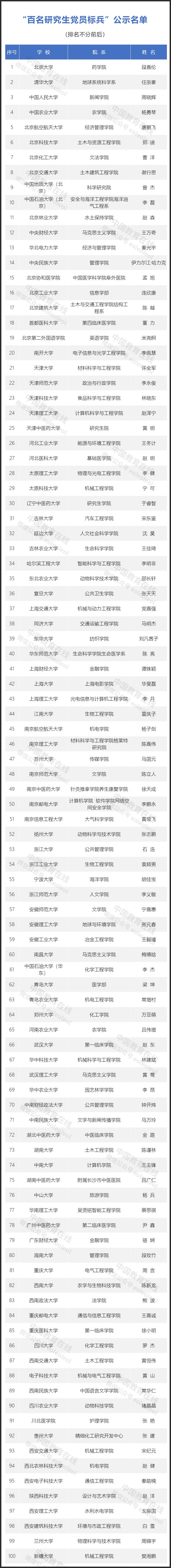 第二批全國高校“百個研究生樣板黨支部”和 “百名研究生黨員標兵”名單公示