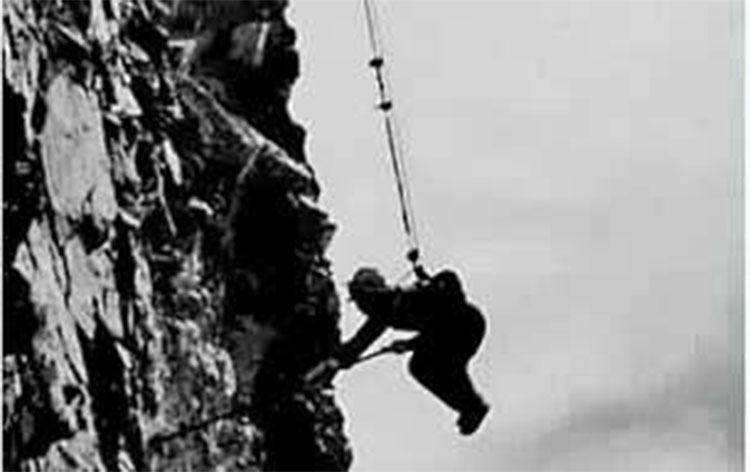 施工時,戰士們系著一條安全繩,懸在半空,排除碎石,腳下是萬丈深淵。