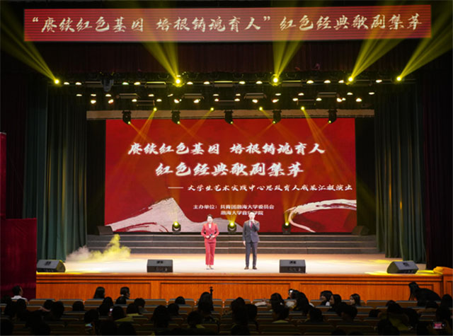12月22日晚,渤海大學在音樂廳舉辦賡續紅色血脈 培根鑄魂育人《紅色經典歌劇集萃》思政育人成果匯報演出。學校黨委書記叢茂國,黨委副書記、校長趙建國等學校主要領導出席演出,各職能部門、學院負責人、600余名學生代表觀看演出。