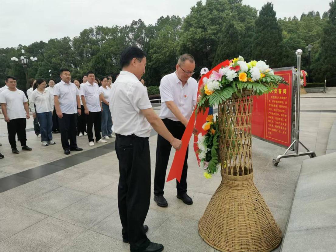 踏入紀念園,松柏蒼翠,莊嚴肅穆的氛圍撲面而來。在巍峨矗立的黃麻起義和鄂豫皖蘇區革命烈士紀念碑前,全體黨員同志整齊列隊,莊嚴肅立,向革命烈士敬獻花籃。黃功學、許松緩步邁向紀念碑前,仔細整理寄托著深切緬懷之情的花籃緞帶,每一個動作都飽含著對先烈的敬重。隨后,全體人員深深鞠躬致敬,靜默的氛圍中,仿佛能聽見歷史的回響,先烈們浴血奮戰的場景在眾人腦海中浮現。