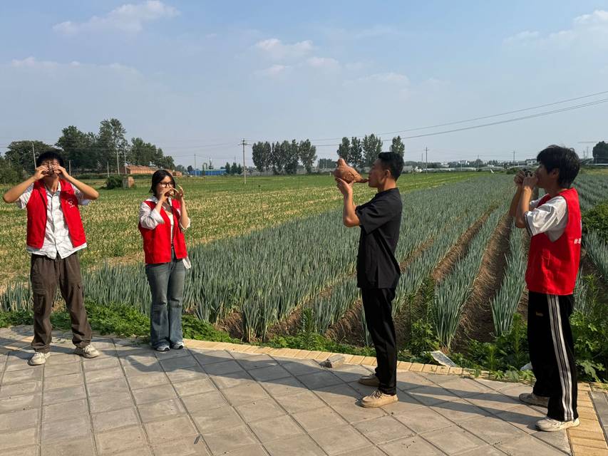 在制作完成后,成員和傳承人楊玉冰一起在農田里吹響泥咕咕,這一聲聲泥咕咕的鳴響,是傳承人與青春力量的對話。讓古老技藝的溫度,通過呼吸與樂聲,傳遞給每一株莊稼、每一縷微風,訴說著傳統工藝從未遠去,正以青春創想的姿態,在生活土壤里持續生長。