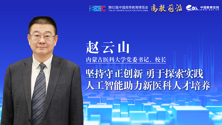 在第62屆中國高等教育博覽會期間,內蒙古醫科大學黨委書記、校長趙云山接受中國教育在線專訪,就人工智能對教育的影響、新醫科人才培養等話題分享了觀點。