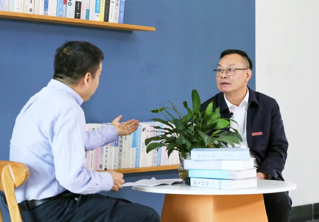 中國教育在線總編輯陳志文對話對臺州職業技術學院校長潘玉駒
