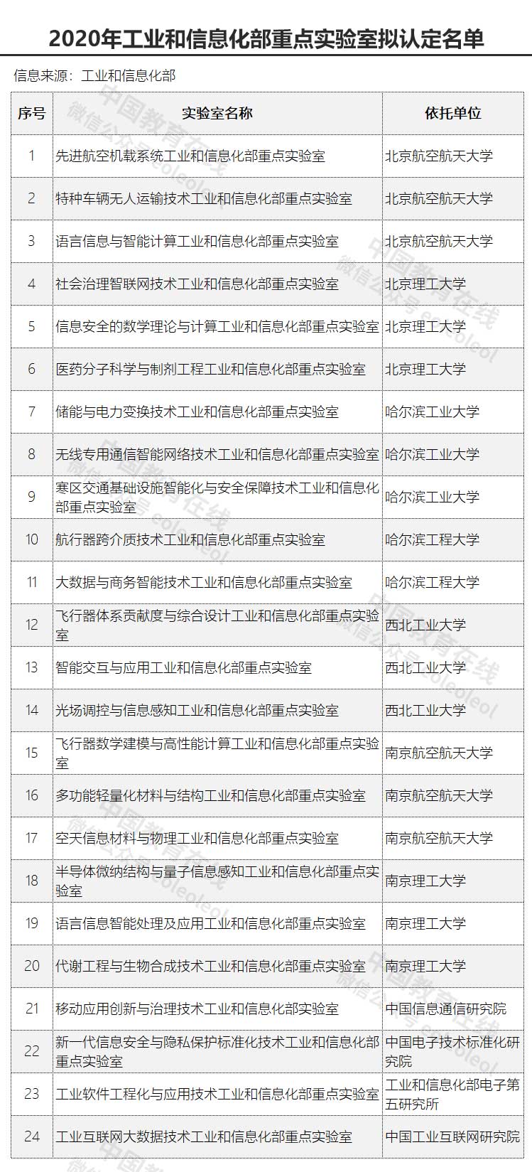 7所高校入選!2020年工業和信息化部重點實驗室擬認定名單公示