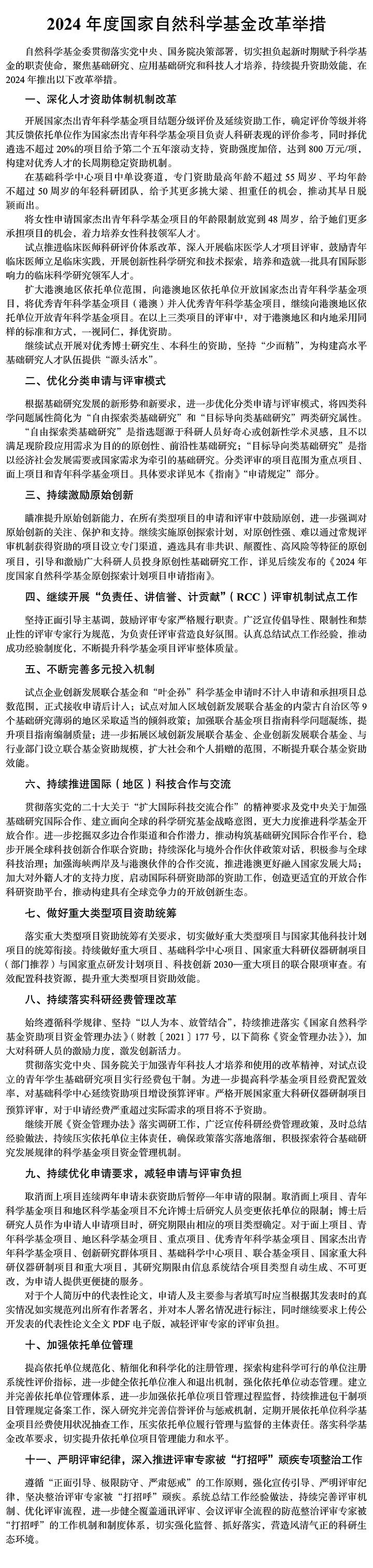 1月11日,國家自然科學基金委員會正式發布《2024年度國家自然科學基金項目指南》。