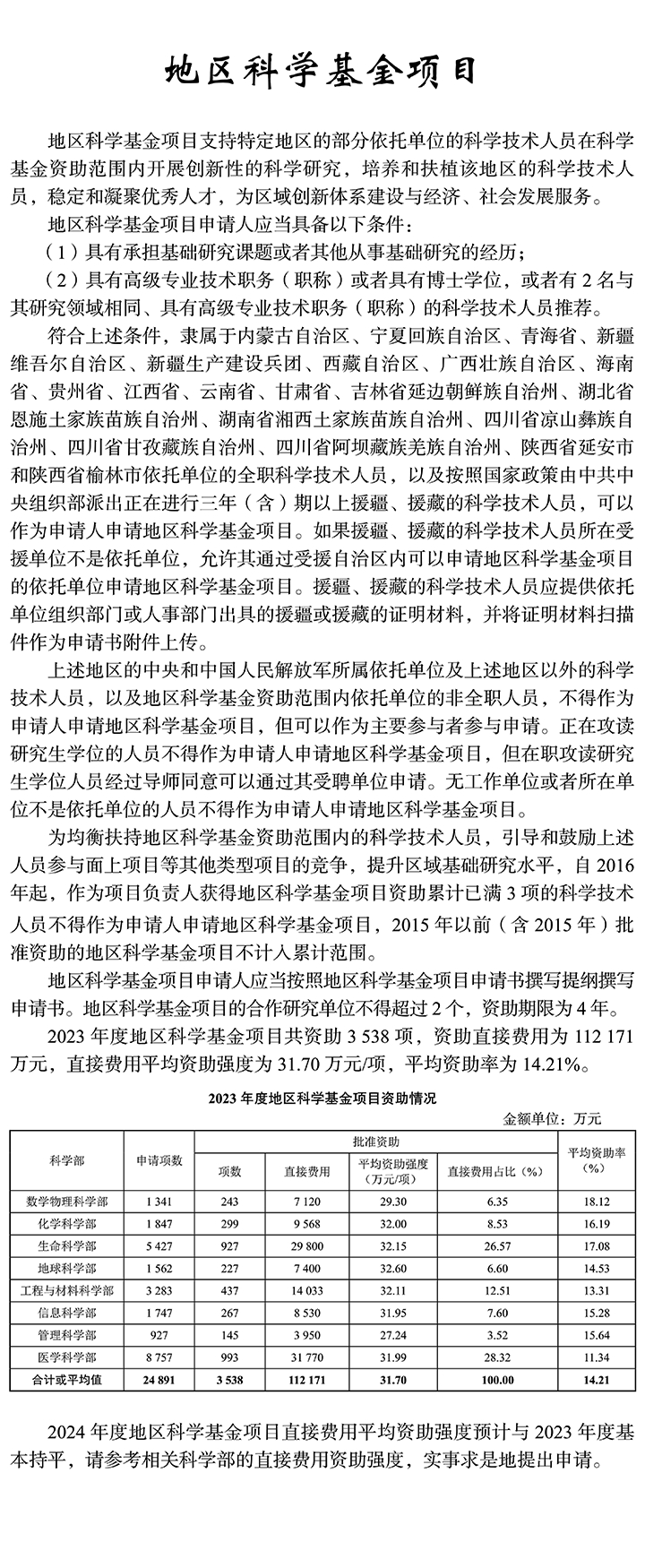 3. 地區科學基金項目:自 2016 年起,作為項目負責人獲得資助累計不超過 3 次,2015 年以前(含 2015 年)批準資助的地區科學基金項目不計入累計范圍。