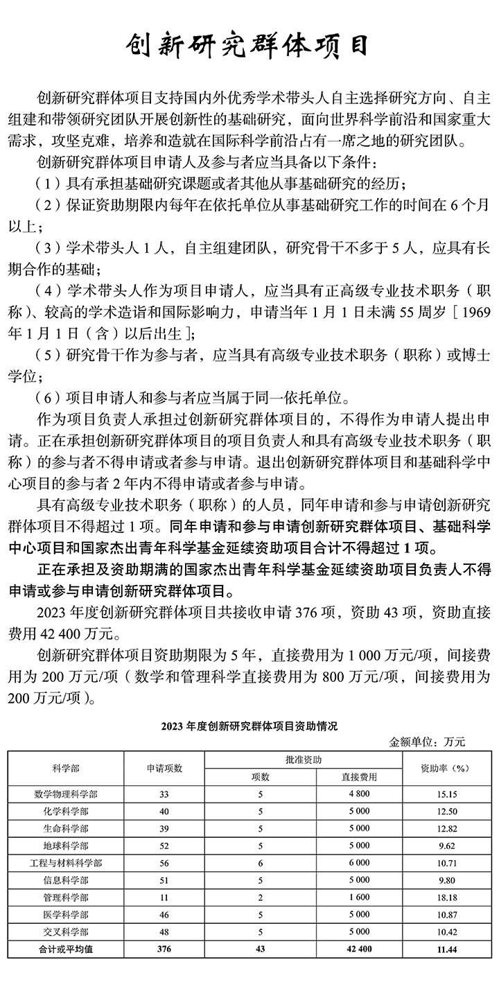 1. 青年科學基金項目、優秀青年科學基金項目、國家杰出青年科學基金項目、創新研究群體項目:同類型項目作為項目負責人僅能獲得 1 次資助。
