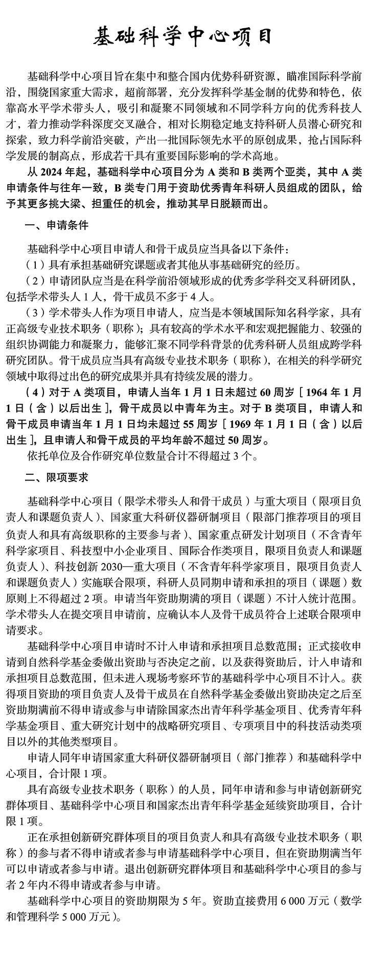 申請人同年申請國家重大科研儀器研制項目(部門推薦)和基礎科學中心項目,合計限 1 項。